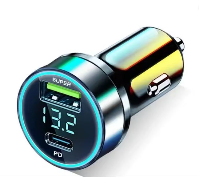 Ładowarka samochodowa 240 W. 2 porty USB szybkiego ładowania z wyświetlaczem cyfrowym