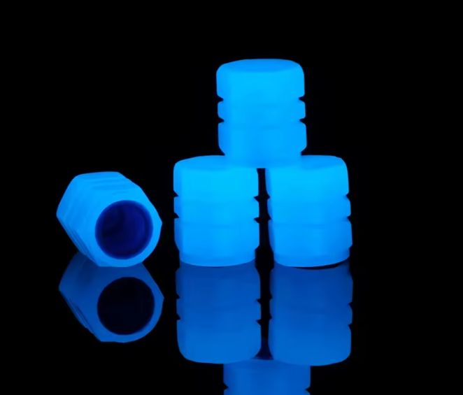 Nakrętki zaworów opon samochodowych z tworzywa sztucznego. Świecące Niebieskie